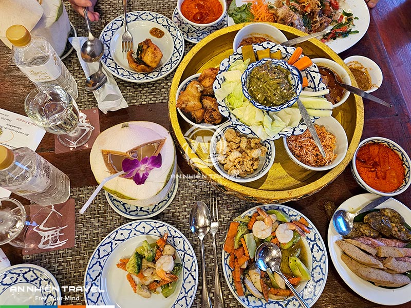 Tối: Đoàn nhận phòng khách sạn, dùng bữa tối Kantoke tại nhà hàng với những món ăn đặc trưng của vùng Bắc Thái, thưởng thức Chương trình nghệ thuật dân gian với âm nhạc và vũ điệu truyền thống Thái Lan.